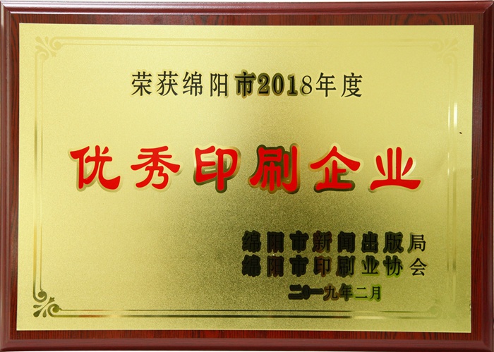 公司榮獲綿陽市2018年度優(yōu)秀印刷企業(yè)