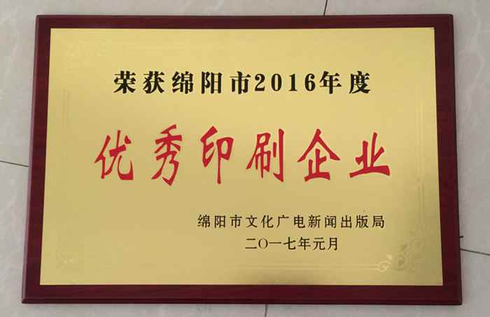 祝賀四川信立包裝、綿陽教育印刷廠榮獲2016年度市級優(yōu)秀印刷企業(yè)