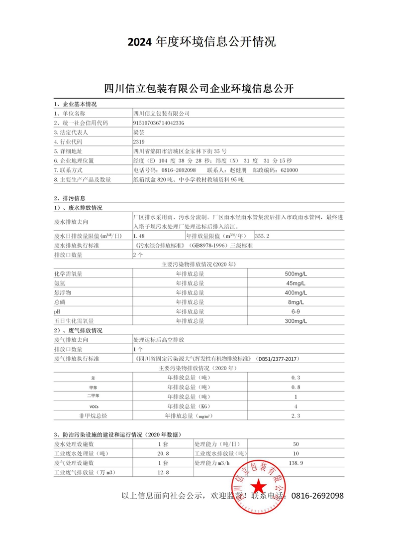 2024 年度環(huán)境信息公開情況